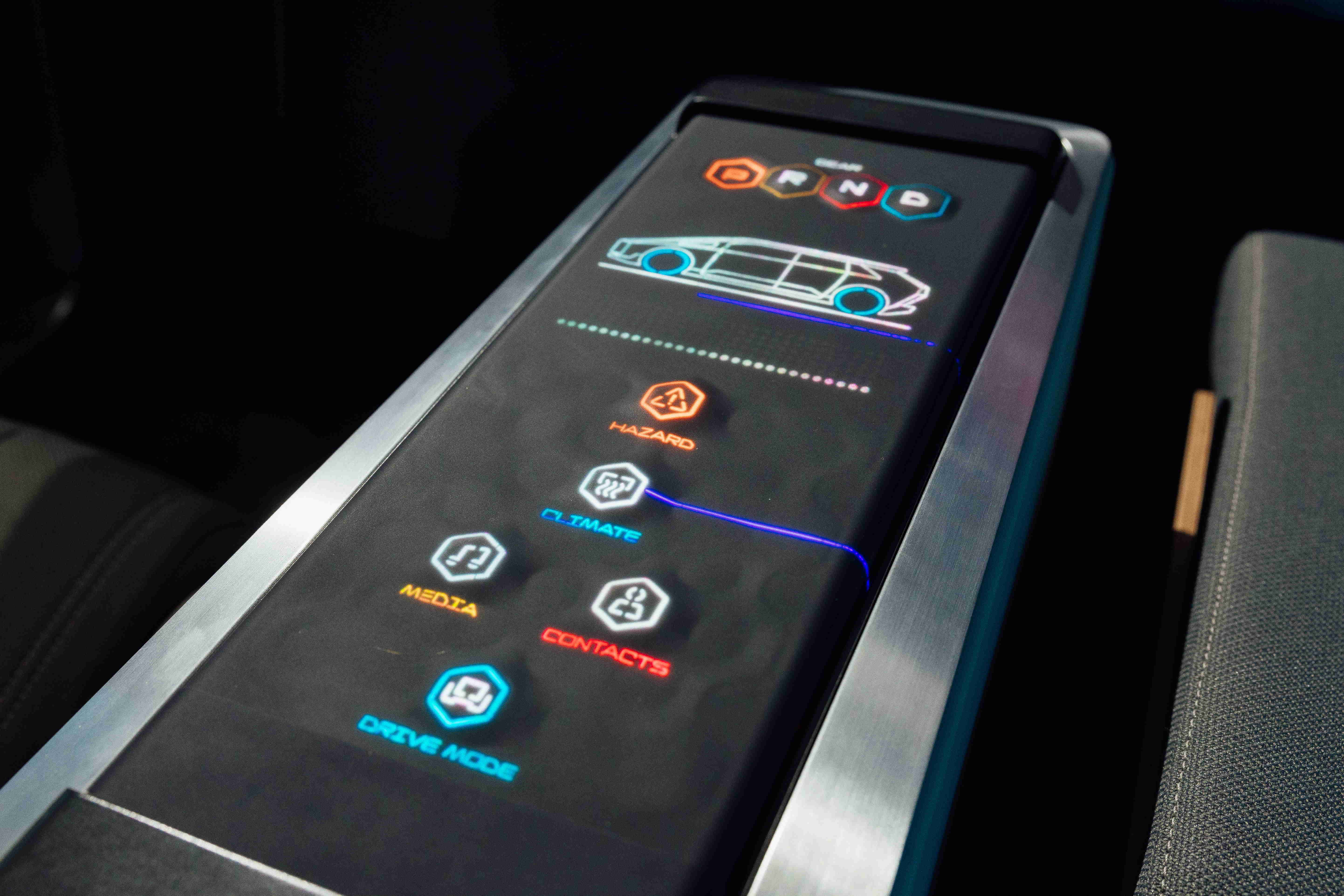 多變形態(tài)中控顯示(Morphing Center Control)擁有動(dòng)態(tài)變化的表面,平時(shí)常態(tài)顯示車輛功能,進(jìn)一步操作時(shí),則會(huì)隆起成為3D 按鈕,并在觸控時(shí)以震動(dòng)回?,臆S傅牟僮骺慈嘶ザ戮辰?。
