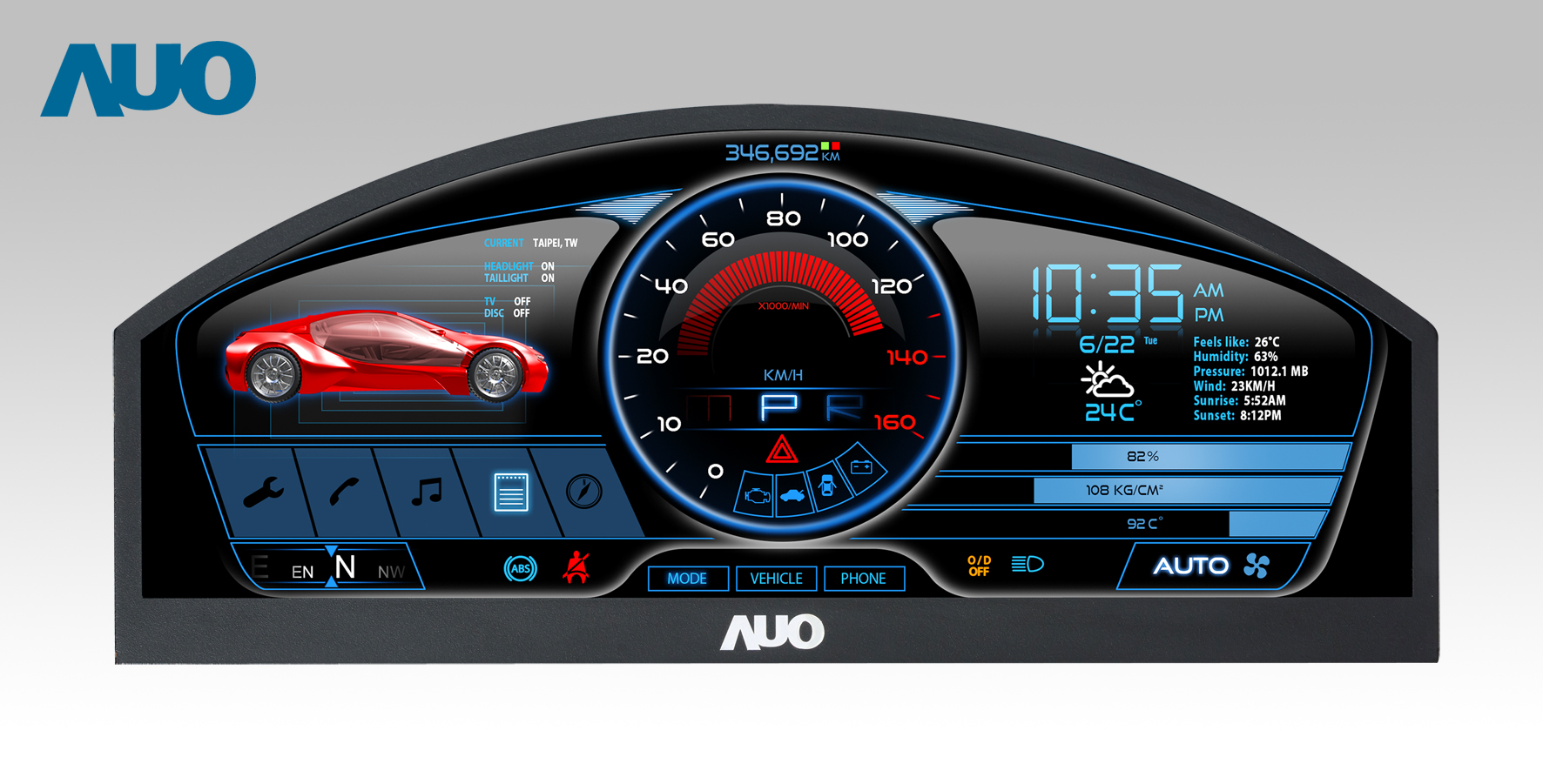 LEYU官網 12.3吋超高解析異型切割車用面板,擁有流線外觀及精細畫質