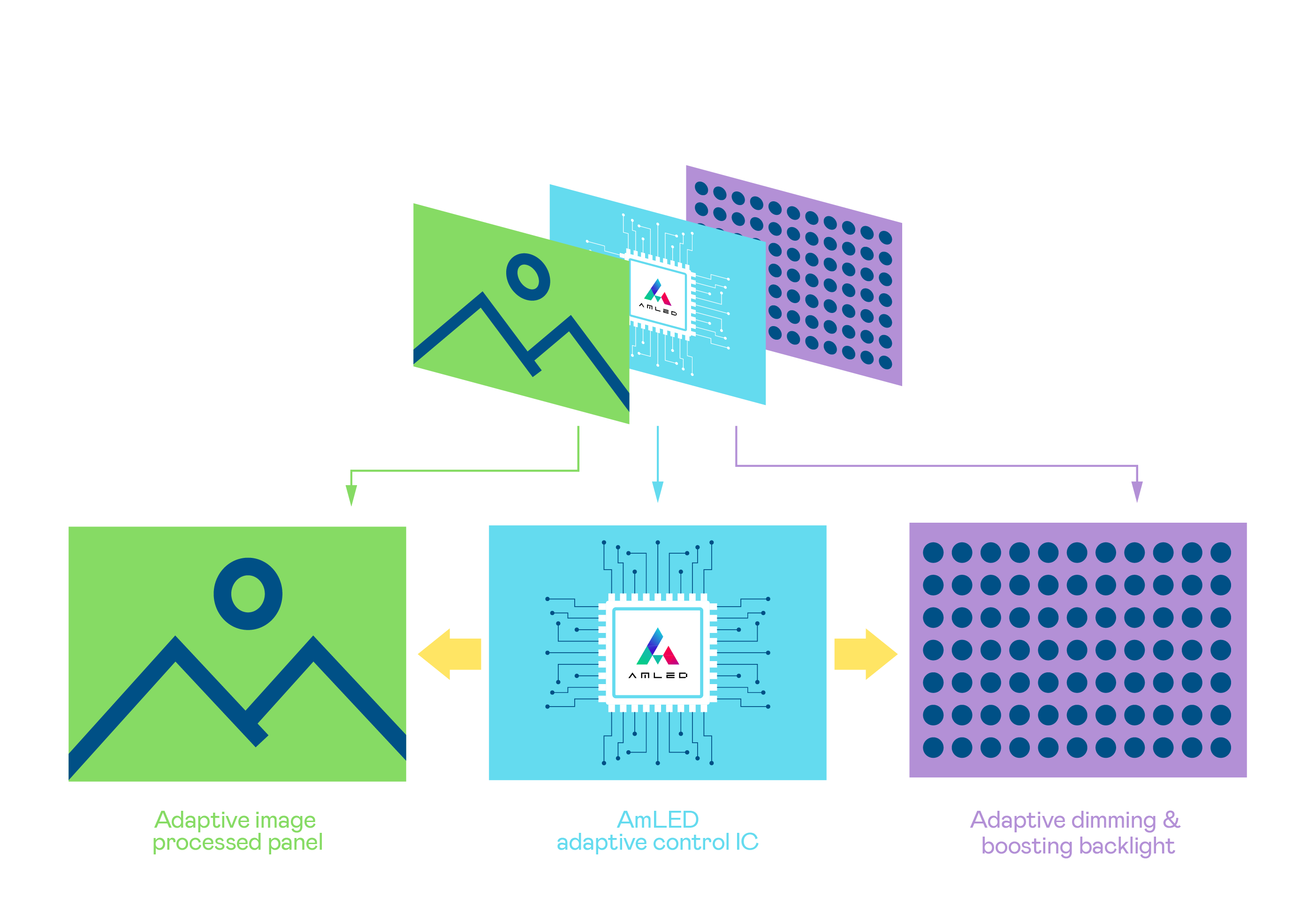 AmLED 具備更省電與低藍光特性。與一般的 LED 背光顯示技術相比,由于 AmLED 常時處于局部調光狀態,其功耗僅有前者的 50% 左右,同時 AmLED 還具備低藍光特性,滿足長時間使用的護眼需求。