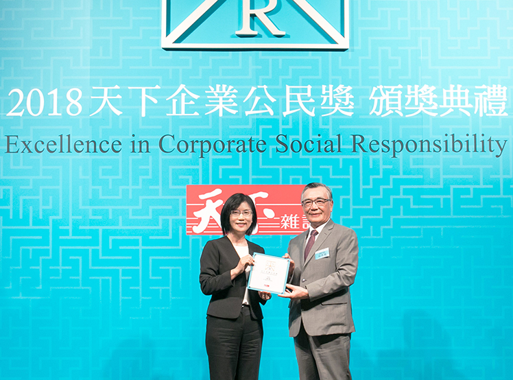友達榮獲 2018 天下企業公民獎,由友達光電永續長古秀華 (左) 代表領獎