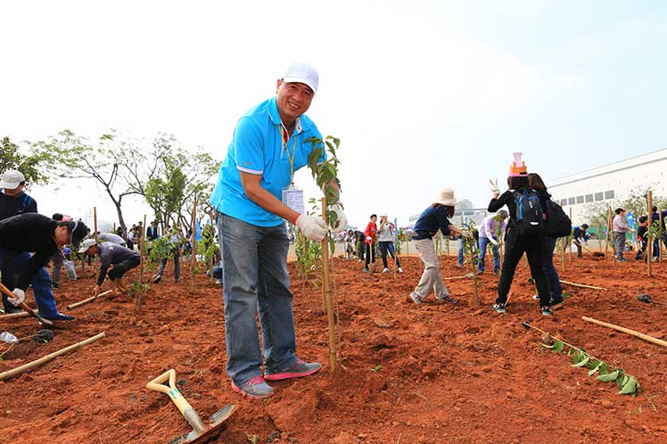 友達董事長暨執(zhí)行長彭雙浪與員工一同響應(yīng)植樹活動